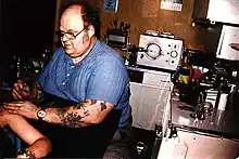 Streckenbach and Kohrs pioneered many jewelry designs including the fixed bead ring and internally threaded barbells.[10] Samy introduced Jim Ward to barbell style jewelry.[11] "The first barbells I recall came from Germany. Doug had made contact with Tattoo Samy, a tattooist and piercer from Frankfurt. Over the years Samy came to the States a number of times and frequently showed up in LA to visit Doug. On one of his first visits he showed us the barbell studs that he used in some piercings. They were internally threaded, a feature that made so much sense that I immediately set out to recreate them for my own customers."Jim Ward[12] Phil Andros: "A German tattoist named Horst Streckenbach invented a radically different tattoo pen, with each instrument containing its own small motor was attached an irregular camwheel that furnished the up and down movement."[13]