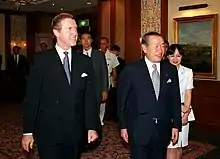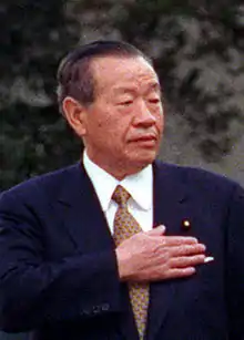 Hosei Norota (野呂田 芳成, Norota Hōsei, 25 October 1929 – 23 May 2019) was a Japanese politician of the People's New Party, a member of the House of Representatives in the Diet (national legislature). A native of Noshiro, Akita and graduate of Chuo University he joined the Ministry of Construction in 1953. Leaving the ministry, he was elected to the House of Councilors in the Diet for the first time in 1977. In 1983 he was elected to the House of Representatives for the first time. From 1995 to 1996 he served as the Minister of Agriculture, Forestry and Fisheries in Tomiichi Murayama's cabinet. In 1998 he served briefly as Director General of the Japan Defense Agency.