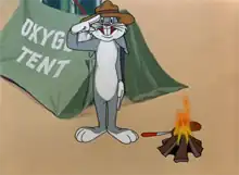 Bugs hides in a closet, not noticing a skeleton in there, and comes out scared when he does see it. Then, when chased into the laboratory, he makes an ostensibly explosive cocktail and threatens the scientist with it, saying: "One more step and I'll blow ya up! This contains manganese, phosphorus, nitrate, lactic acid, and dextrose!" The scientist laughingly dismisses the threat, telling Bugs the aforementioned ingredients are the formula for a chocolate malt and Bugs drinks it, saying: "Yum, yum! I'm a better scientist than I thought." Then Bugs hides near an oxygen tent disguised as a Boy Scout, leading the scientist in the wrong direction and Bugs sits up and salutes: "That was me good deed for the day!".