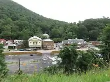 Hot Springs was once the terminus of the Chesapeake & Ohio Railroad's Hot Springs Branch, which extended from Covington in Alleghany County to Hot Springs in large part passenger service to serve the resort in Hot Springs, though other customers were served, including lumber companies.[10] There was a turntable in Hot Springs that reversed the train for the return trip back. The C&O once considered extending the line into West Virginia to serve the logging industry, but decided to build its Greenbrier Division in West Virginia instead.[11] By 1975 the C&O abandoned the branch line, and a tourist railroad, the Allegany Central, was to start. However, the Homestead resort decided it no longer wanted the railroad or the tourist line to extend to Hot Springs, so the rails were torn up to the Bath County line. In 1984 the tourist railroad ended and a rail trail, Jackson River Scenic Trail was subsequently built on the line in Alleghany County but was not extended by Bath County to Hot Springs to follow the full length of C&O's Hot Springs Branch. One of the original steam engines that served the Hot Springs Branch is preserved in Covington, Virginia.[12]
