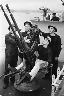 Early in World War II, the French, Italian and Japanese navies were using twin (CAD Mle 1929 - Contre Avions Double) and quadruple (CAQ mle 1929 - Contre Avions Quadruple) mountings on many of their warships. French warships that were refitted in the United States in 1943, such as the battleship Richelieu or the destroyer Le Terrible, had their 13.2 mm machine guns replaced by more powerful Oerlikon 20 mm cannons.
