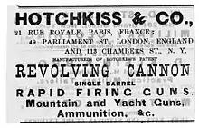 An advertisement by Hotchkiss & Co. for revolving cannon, published in November 1885