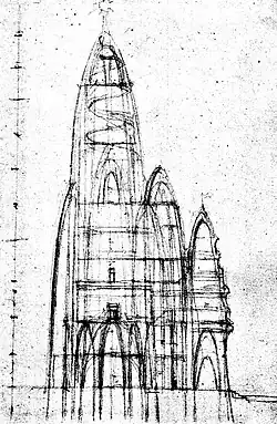 Commissioned in May 1908, it would have been 1,180 feet (360 m) tall; many believed its futuristic design to be unrealistic for its time.[1] Little is known about its origin, and the project remained unknown until 1956, when a report by Joan Matamala i Flotats was published, called "When the New World called Gaudí".[1]