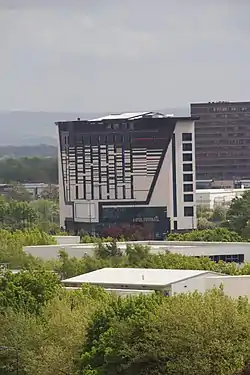 Hotel Football is an upscale football-themed hotel overlooking Old Trafford, the home of Manchester United F.C., in Trafford, England. It is owned by former players Ryan Giggs, Paul Scholes, Nicky Butt, Phil Neville and Gary Neville, as well as the GG Hospitality Management Company. The hotel was built at a cost of £24 million and features 133 rooms, a restaurant called Cafe Football and a five-a-side football pitch on the roof.[1] It opened in March 2015.[2]