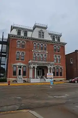 The Hotel Hurst is a historic building located in Maquoketa, Iowa, United States. It was built in 1897 as the Delmonico Hotel by a group of local investors who desired a first-class hotel in town. The building was constructed towards the end of Maquoketa's financial boom years that had begun with the arrival of the railroad in 1870 and the county seat designation in 1873.[2] The three-story, brick Second Empire style building anchors the southern end of the central business district. It features decorative cast hoodmolds over the windows on the main facade, and a mansard roof. The iron cresting on top of the building is not the original. The building was listed on the National Register of Historic Places in 1989.[1] It has subsequently been converted into an apartment building. The Hotel Hurst Garage, which was located immediately north of the hotel, has been torn down.