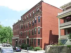 The Hotel Kempsford is a historic apartment house at 72 Walnut Street in Brookline, Massachusetts. The four story brick building was designed by Brookline architect Obed Smith and built in 1875 for Eben Wright, a real estate developer who also built the nearby Hotel Adelaide. This building is a high-quality local example of Victorian Gothic architecture in brick. The apartment units inside are also in a distinctive two-story plan, one of the earliest examples of the type.[2]