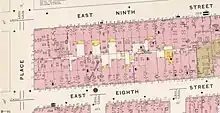 Hotel Lafayette (upper left), SE corner of University Place and East Ninth Street, on a map published in 1904
