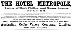 - ↑ "Hotel Metropole Sydney". The Daily Telegraph. New South Wales, Australia. 29 January 1891. p. 5. Retrieved 23 July 2023 – via National Library of Australia.