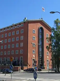 The Hotel Tammer is one of Finland's oldest operating hotels. The building is listed as a part of Tammerkoski national heritage area by the Finnish National Board of Antiquities.[1] Built in neo-classical style and designed by town architect Bertel Strömmer, it was ready to open just in time for the 150th birthday of Tampere in fall 1929. A tragic event, sinking of steamer SS Kuru in lake Näsijärvi, cancelled all festivities. The depression years in the beginning of 1930s drove Hotel Tammer into financial trouble. At the end of the 1930s a better economic situation saved the hotel.[2]