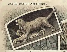 The first establishment called Waldkater ("wildcat") was built in 1845 and subsequently altered many times. The name goes back to a story, according to which a wine adulterator had been changed into a cat as a punishment. Before it was shot by a hunter the cat was supposed to have been saved by revealing a recipe for a May Day drink (Maitrank). But because this drink was also adulterated and caused the hunter to have a hangover, the adulterator had to be saved again and now showed the hunter a hidden treasure. With this capital the hunter built the hotel as well as a monument to the adulterator.[1]