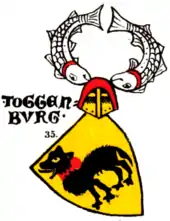 The hound is a charge in classical heraldry. In English heraldry, the commonly used variant are the talbot, also blazoned as sleuth-hound, e.g. in the arms of Wolseley of Staffordshire, the greyhound and bloodhound. Rarely seen variants are the ratch-hound, the mastiff (alant or aland[1]), the foxhound, the spaniel and the terrier. The "sea-dog" is a curious charge resembling the talbot but with scales, webbed feet and a broad tail, used in the arms of Stourton barony, presumably originally depicting a beaver (as used in the Coat of arms of Oxford).[2] Similar charges include the wolf and the fox.[3]