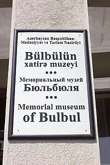 House Museum of Bulbul (Azerbaijani: Bülbülün ev muzeyi) or Memorial Museum of Bulbul (Azerbaijani: Bülbülün xatirə muzeyi) is a historic house museum of famous Azerbaijani Soviet singer Bulbul. The memorial museum was created in 1976 on the personal initiative of Heydar Aliyev and the museum had a ceremonial opening in 1982. The museum is located in Bulbul 15, Sabail, Baku.[1]