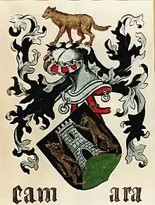 ![]() The Coat of arms of the House of Cámara as depicted in the Livro do Armeiro-Mor, the oldest and most important roll of arms of the Kingdom of Portugal, circa 1520. | |