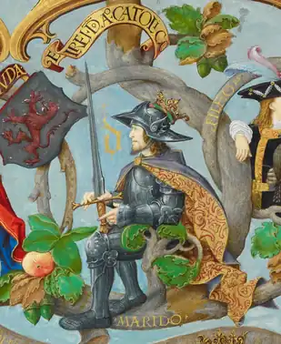 Alfonso I in a miniature from The Portuguese Genealogy (Genealogia dos Reis de Portugal) (1530-1534).