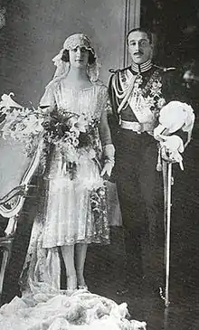 The following division of the House De Silva Fernández de Híjar Portugal into three lineages (two Spanish and one Italian),[lower-alpha 3] was due to three children born from the two marriages of Don Andres Avelino de Silva Fernández de Híjar Portugal y Fernández de Cordoba (1806-1885)[7] XIV Count-Duke of Aliaga and Count of Palma del Rio. From the first wedding with Doña Josefina de Ferrari y Bonet (1819-1876)[8] (daughter of Don Jeronimo de Ferrari of Parma, “Kapellmeister” of King Ferdinando VII of Borbone) was born Doña Josefa Maria del Carmen de Silva Fernández de Híjar Portugal (1837-1906);[9] who, with her daughter -doña María Dolores (1861-1923)- and with Doña María Dolores's son Don Vittorio Umberto de Silva Fernández de Híjar Portugal (1881/1954) [illegitimate son whom Doña Maria Dolores de Silva Fernández de Híjar Portugal had with Don Carlos Maria Fitz James Stuart y Portocarrero Palafox (1849-1901)XVI duke of Alba] by matrilineal descent gave origin to the Italian lineage still in existence.[10] From his second wedding with Doña Mary Caroline Elisabeth Campbell y Vincent (1820-1894)[11] were born ten children of whom two, [Alfonso I (1848-1930)[12] and Jaime (1852-1925)[13]], gave origin to the two Spanish lineages still in existence, too. The Spanish lineage of Alfonso I, like it had already happened to the House De Silva Fernández de Ixar Portugal with two unions between the De Silva and the Fitz James Stuart,[6] rejoined the descendants of James Fitz-James I Duke of Berwick (1670-1734) [illegitimate son, who James II Stuart (1633-1701) King of England had with Arabella Churchill y Drake (1648-1730) sister of John Churchill I Duke of Marlborough] when Doña Maria del Rosario de Silva Fernández de Híjar Portugal y Guterbey(1900-1934) married Don Jacob Fitz James Stuart (1878-1953) IX Duke of Berwick and XVII Duke of Alba. In this way, by matrilineal descent, the Spanish lineage of the De Silva joined the dukedom of Híjar and its titles with the House Fitz James Stuart y de Silva Fernández de Híjar Portugal. Whereas the descendants of Don Jaime have just the titles of Dukes of Lecera and Dukes of Bournonville, the Fitz James Stuart y de Silva hold, actually, the majority of the titles of the House De Silva.
