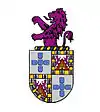 The second, of the Portugal-Noronhas , in the I and IV quarters, shows five blue shields cross-shaped, each with five silver bezants, placed to quincunx of the House De Portugal and, in the II and III quarters, the castle with the three golden towers surmounted by two crimson lions of the House of Castiglia and of Leon. The quarter is framed by nine golden squares alternated by nine blue towers. Doña Isabel de Portugal, bastard daughter of King Ferdinand I, married Don Alfonso Dount of Gíjon Noronha, bastard son of the King Enrico II di Castiglia. Heraldry joins the symbols by matrilineal descent: Portugal-antigo (only because of the matrilineal line of the descendants of Doña Isabel, daughter recognized by the King Ferdinando I) with the one of the Noronhas.[14]