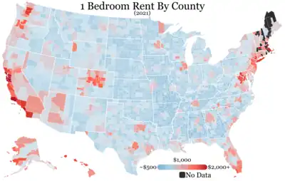 The median rent increased from $483 in 2000 to $1,216 in 2021; more than doubled in the past two decades.[6] According to Zillow data, the average U.S. home was worth about $230,000 at the start of 2020. In May 2023 it has reached over $330,000. As housing expenses rose in 2021, households with incomes under $30,000 had little money left over after paying for utilities and rent - only approximately $380 per month, down from nearly $600 two decades earlier.[7]
