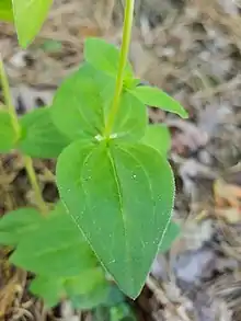 Houstonia purpurea (formerly Hedyotis purpurea) is a species of flowering plant in the coffee family known by the common names Venus's pride, woodland bluet, and purple bluet. It is native to the eastern United States from eastern Texas and Oklahoma east to Florida and Pennsylvania, with scattered populations in Nebraska, Iowa, Michigan, New York State and New England.