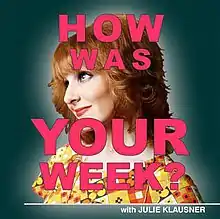 How Was Your Week with Julie Klausner was a comedy and interview audio podcast hosted by writer and performer Julie Klausner. The episodes varied in length, and included conversations with entertainers, writers, comedians, and performers. The show was usually recorded in Klausner's home, which set an informal tone.[1] The show ran from March 8, 2011 until May 29, 2020, for a total of 236 episodes.