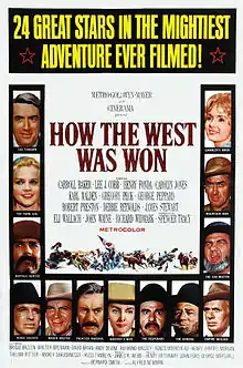 How the West Was Won is a 1962 American epic Western film directed by Henry Hathaway (who directs three out of the five chapters involving the same family), John Ford and George Marshall, produced by Bernard Smith, written by James R. Webb, and narrated by Spencer Tracy. Originally filmed in true three-lens Cinerama with the according three-panel panorama projected onto an enormous curved screen, the film features an ensemble cast formed by many cinema icons and newcomers, including (in alphabetical order) Carroll Baker, Lee J. Cobb, Henry Fonda, Carolyn Jones, Karl Malden, Gregory Peck, George Peppard, Robert Preston, Debbie Reynolds, James Stewart, Eli Wallach, John Wayne and Richard Widmark. The supporting cast features Brigid Bazlen, Walter Brennan, David Brian, Ken Curtis, Andy Devine, Jack Lambert, Raymond Massey as Abraham Lincoln, Agnes Moorehead, Harry Morgan as Ulysses S. Grant, Thelma Ritter, Mickey Shaughnessy, Harry Dean Stanton, Russ Tamblyn and Lee Van Cleef.