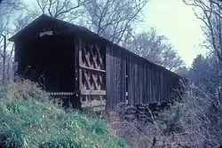 Howard's Covered Bridge is a historic covered bridge outside of Smithonia in Oglethorpe County, Georgia, United States. It was added to the National Register of Historic Places on July 1, 1975. The bridge is located 3 miles southeast of Smithonia on SR S2164. The bridge was built in 1905 in a Town lattice design and is 168 feet (51 m) long. The span travels over Big Clouds Creek. The site is marked by a historical marker posted by the Georgia Historical Society.[2] The bridge was named for the pioneer family that settled in the area in the late 1700s.[2] It was built with convict labor and is fastened with wooden trunnels.[2] The timber used was transported on the Smithonia and Dunlap Railroad, connecting James Monroe Smith's farm with the Georgia Railroad at Dunlap, Georgia.[2]