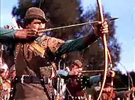 - ↑ The splitting-the-arrow scene can be viewed in an extended excerpt from The Adventures of Robin Hood available on YouTube. "Scene from The Adventures of Robin Hood (1938 BluRay)" posted on YouTube by heckofjob, August 19, 2010. Retrieved October 4, 2018.
