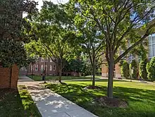 The campus was built by Dunbarton College of the Holy Cross, which occupied it until the school closed in 1973.[34] The school's main building, Houston Hall, is named after Charles Hamilton Houston.[33] The library was named after Vernon Jordan after his death in March 2021.[35]