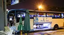 Bus Operated by All China Express at Huanggang Checkpoint in Shenzhen awaiting departure cross-border to Mong Kok in Hong Kong