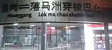 Sign at Huanggang Port indicating direction to unfranchised bus across Hong Kong.
