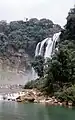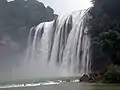 Huangguoshu Waterfall (simplified Chinese: 黄果树瀑布; traditional Chinese: 黃果樹瀑布; pinyin: Huáng Guǒshù Pùbù; Wade–Giles: Huang-kuo-shu p'u-pu; lit. 'Yellow-Fruit Tree Waterfalls'), is one of the largest waterfalls in China and East Asia located on the Baishui River (白水河) in Anshun, Guizhou province. It is 77.8 m (255 ft) high and 101 m (331 ft) wide. The main waterfall is 67 m (220 ft) high and 83.3 m (273 ft) wide.[1]