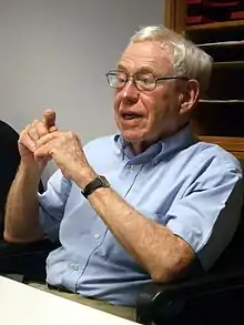 He attended Harvard University from 1947.[9] With a senior honors thesis on Causality and Quantum Theory (for which W. V. O. Quine was the main examiner)[9] he was awarded a BA summa cum laude in 1951[8] and joined Phi Beta Kappa.[10] He was awarded an MA in 1952.[8][10] He was a Teaching Fellow at Harvard in 1952-1953 (as he was again in 1954 and 1956).[11] Then, on a Harvard Sheldon traveling fellowship, Dreyfus studied at the University of Freiburg over 1953–1954.[10] During this time he had an interview with Martin Heidegger.[9] Sean D. Kelly records that Dreyfus found the meeting 'disappointing.'[12] Brief mention of it was made by Dreyfus during his 1987 BBC interview with Bryan Magee in remarks that are revealing of both his and Heidegger's opinion of the work of Jean-Paul Sartre.[13][6]