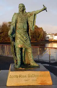 He died in 1505 and was succeeded in Tyrconnell by his son, Sir Aodh Dubh Ó Domhnaill, who was also considered a strong ruler who increased the lineages power into northern Connaught and enjoyed the support of the Crown authorities in Dublin.[5] Together their reigns are sometimes considered a "golden age" for the O'Donnells, when compared to the violent succession disputes that followed in the later 1500s.