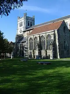 ![]() The church at Waltham Abbey, where Hugh de Neville was buried | |