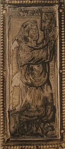 Hugo of Oignies (French: Hugo d'Oignies, before 1187 in Walcourt – c. 1240 in Oignies)[1] was a lay brother of Oignies Abbey. He was a metalworker and painter and is the last of the great jewelers of Mosan art. He is a representative of the school of the Entre-Sambre-et-Meuse and was considered the greatest artist of the Meuse Valley of his time.[2]