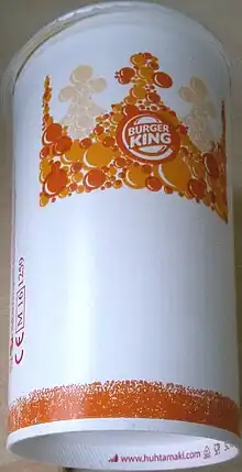 Huhtamäki Oyj (styled Huhtamaki) is a global food packaging specialist, headquartered in Espoo, Finland. Its products include paper and plastic disposable tableware, such as cups, plates and containers for quick service restaurants, coffee shops, retail stores, caterers and vending operators. The company provides coated paper cups for fast food chains such as Burger King, as well as flexible packaging and labels for food and drink, pet food, pharmaceuticals, household and hygiene brands. Huhtamaki also makes egg cartons and trays, fruit trays and cup carriers.