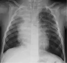 HBoV is found in respiratory samples from healthy subjects.[24] In patients with respiratory complaints, it can be found alone or, more often, in combination with other viruses known to cause respiratory complaints.[6] Newborns are probably protected by passive immunization.[25] The age group most frequently affected appear to be children between the ages of six months to two years,[25][26] although cases in children older than five and even in a 28-year-old have been reported.[27]