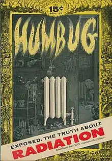 Humbug is a humor magazine published from 1957 to 1958. Edited by Harvey Kurtzman, the magazine took satirical jabs at movies, television, advertising and various artifacts of popular culture, from cereal boxes to fashion photographs.[1] Nine of the eleven issues were published in a black-and-white comic book-sized format.