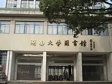 In 1949, the name Hunan University was again adopted, and the calligraphy of "Hunan University" was written by Mao Zedong in 1950 as soon as the People's Republic of China was founded.[4][6]