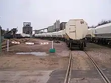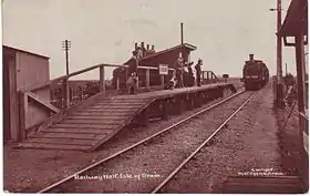 By 1906 it had become clear that Port Victoria would not develop into a major continental sea port and the South Eastern and Chatham Railway (SECR) began to look for new opportunities to bring in revenue. In July that year, seven wooden halts were constructed: Milton Road, Milton Range, Denton, Uralite, Beluncle, Middle Stoke and Grain Crossing.[2] Uralite halt was named after the nearby British Uralite Ltd complex which had opened in 1899 and manufactured drainage pipes from wet asbestos paste. On 1 May 1915, the little-used Milton Road Halt was closed.[3] The branch line to Allhallows-on-sea was opened on 16 May 1932,[4] followed on 17 July 1932 by opening of another halt at Stoke Junction.[5] A new station opened at Grain on 3 September 1951, replacing Grain Crossing Halt, which closed to rail traffic on 11 July 1951 and passengers on 3 September 1951 - a bus service being provided between those dates. The new Grain station was 300 metres (330 yd) west of Grain Crossing Halt.[6]