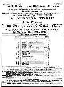 The station became popular with the Royal Family. This was because it was an isolated location.[1] Both the Royal Train and the Royal Yacht were regular visitors to Port Victoria.