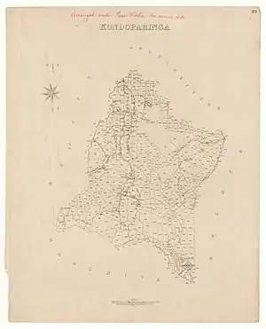 - ↑ "Search result for "Hundred of Kondoparinga (HD)"". Property Location Browser. Government of South Australia. SA0002619. Archived from the original on 7 December 2015. Retrieved 20 December 2016. The following layers were selected: Suburbs and Localities, Counties, Hundreds