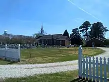 In 1653 a wealthy vestryman who had some prior disagreements with Rev. Cotton, Stephen Charlton, gave land for a glebe to support the minister, and may have given additional funds to build a church. When he died two years later, his will provided that the church would receive his estate if his daughters died. Since one was married at 12 years of age and soon died in childbirth, litigation occurred, and again after disestablishment of the Episcopal Church circa 1808.[4][5] The Glebe of Hungar's Parish remained the official residence of the parish's ministers from 1745 until 1850, although it was sold at auction after disestablishment conditioned upon the litigation results; the last rector to live at the glebe was Rev. Francis Upton, who served until 1850.[4][6]