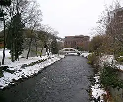 Hunnselva is a river in Innlandet and Viken counties in Norway. The 50.2-kilometre (31.2 mi) long river is located mostly in Innlandet county, but the headwaters are actually just over the border in Viken county. The river generally flows north and it runs through the large lake Einavatnet as it passes through the municipalities of Hurdal, Vestre Toten, and Gjøvik. The mouth of the river is in the town of Gjøvik where it empties into the large lake Mjøsa. The main part of the river is about 23-kilometre (14 mi) long and it runs from the Einavatnet lake to the town of Gjøvik.[2][3][4][5] Along the course, the river passes through the villages of Eina, Reinsvoll, Raufoss, and Hunndalen.[6][7][8] At the town of Gjøvik, the river divides the town with the Nordbyen neighborhood on the north side and the Sørbyen neighborhood to the south.[9] Hunnselva gets its water from bogs and small forest ponds in the west and calcareous streams on the east, meaning the water is rich with nutrients.[3][10] Its watershed extends from Lynga in the south to Gjøvik and Vardal in the north.[6]