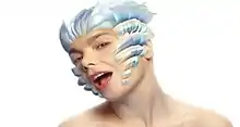 The music video for "Hunter" was directed by longtime collaborator Paul White from Me Company, the design firm that produced the artwork of Homogenic and Post, and their respective singles. Computer animation was handled by Digital Domain. The live-action portion of the video was shot in London in 12 takes, with Björk performing in front of a green screen; she wore makeup to simulate baldness and tracking markers were applied to her head and face for subsequent computer graphics work.[24] A second performance was later shot with the singer's face marked up with infrared dots as a reference for animators to create convincing facial contortions, and a paper clay polar bear head was scanned next to Björk's head for modeling guidelines.[24]
