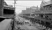 By 1900, Hunter Street stretched from its original eastern terminus to Dairy Farmer's Corner. In this year, 26 hotels were operating along the street with the majority of buildings concentrated east of the intersection with Darby Street. Development gained momentum after the introduction of steam trams in 1887 and the first restrictions on vehicular traffic drawn by animals was introduced in 1898. Drainage problems and raw sewerage necessitated the sealing of Hunter Street, first carried out with wooden blocks, concrete and asphalt, and the street was extended east to Telford Street in the early years of last century.[3]