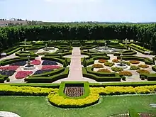 - Italian Grotto – The Italian Grotto features a statue of Saint Francis of Assisi and is lined with pink Wisterias, red Bougainvillea, lemon, orange and olive trees, lavender, and cascading geraniums and pelargoniums.[6]