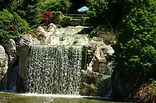 - Sunken Garden – The Sunken Garden features a 10 metre high waterfall with a pergola on top as well as a display of evergreen and deciduous trees, shrubs, flowers and pathways surrounded with hundreds of roses.[11]