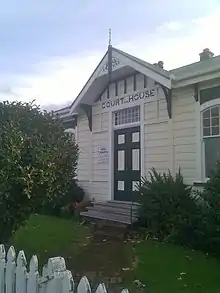 From at least 1895[8] to 1948 the Hunterville Express was published in the town.[9] It was one of 45 newspapers founded by Joseph Ives.[10] Other editors were Cuthbert James Powell,[11][12] Walter Keay,[13] who was also a novelist[14] and whose wife had earlier signed a suffrage petition in 1893, when women first gained a vote.[15] In 1905 it was the Hunterville Express and Upper Rangitikei Advertiser, published 3 times a week.[16] The Express offices were burnt out in 1917.[17]