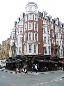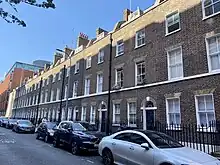 At the southern end on the western side is Chenies Street Chambers which once had its entrance in Chenies Street. Following bombing during the Second World War, the main entrance to the building is now in Huntley Street.[5] The building was originally designed as flats for single professional women, but is now social housing.[6]