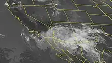 The remnants of Hurricane Blanca spreading across Northwestern Mexico and the Southwestern United States on June 10